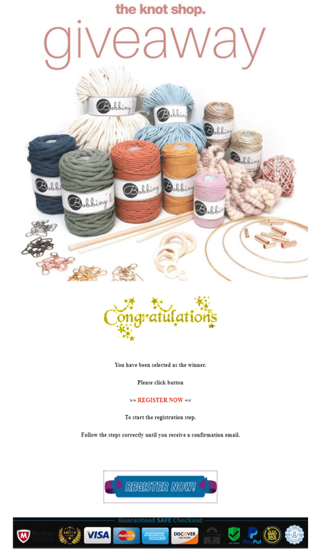 After clicking on the link, the victim is redirected to a phony looking website that requires him or her to register and enter his or her credit card information. However, they are not signing up for the giveaway. They are only handing over their credit card details to the attacker.